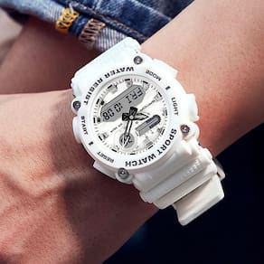 O relógio é resistente a água de 164,04 pés / 50m e pode suportar suor, chuva acidental ou respingos de água. Este relógio é resistente a riscos e proporciona uma sensação suave ao usá-lo, a pulseira é totalmente flexível e se mantém confortável em seu pulso, com largura de 22mm e comprimento de 27cm dá ao relógio uma aparência elegante.