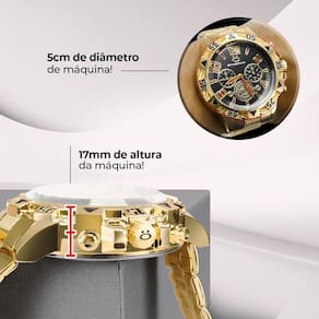 Relógio Masculino Dourado Grande e Pesado Orizom Spaceman - Dourado com Interior Preto e Pulseira Banhada JESUS