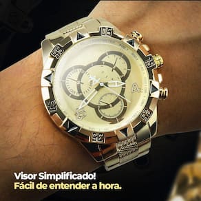 Relógio à Prova D'água Dourado: Vidro em Cristal Mineral, Máquina de precisão em Acetato, Pulseira em Aço - Durabilidade e Conforto em um Único Relógio
