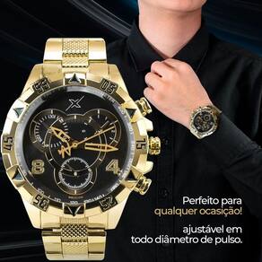 Relogio masculino dourado + corrente casual presente social Kit de Presente Orizom Spaceman X - Relógio Masculino, Corrente, Pingente e Óculos