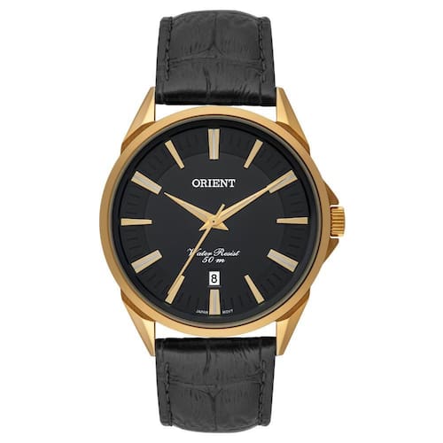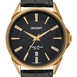 Informações Básicas Marca: Orient Referência: MGSC1010 P1PX Gênero: Masculino : 12 Meses de Orient Nacional Características Composição do Vidro: Cristal Mineral Material da Caixa: Aço Inox Cor da Caixa: Dourado Material da Pulseira: Couro Cor da Pulseira: Preto Fundo da maquina: Rosca Fechado Mostrador: Fundo Preto Funções Calendário Medidas Diâmetro da Caixa: 4,5 cm Contando com a Coroa Espessura da Caixa: 0,9 cm Largura da Pulseira: 2,1 cm Resistência a Água: 5 ATM/ 50 Metros Pode Lavar as Mãos: Sim Pode Usar em Água Corrente: Sim Pode Usar na Piscina: Não Pode Usar em Mergulho Profundo: Não Acompanha: Manual de Instruções Certificado de Orient Embalagem da Orient