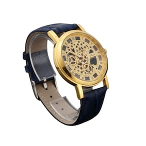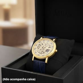 Relógio Masculino Dourado Skeleton Luxo Couro é a escolha perfeita para homens que apreciam sofisticação, engenharia e estilo clássico. Com mostrador skeleton (vazado), permite visualizar os mecanismos internos, trazendo um visual elegante e imponente. A caixa dourada contrasta com a pulseira em couro azul, criando um design refinado e atemporal. Ideal para uso social, trabalho, eventos formais ou ocasiões especiais, esse relógio transmite personalidade, bom gosto e presença marcante no pulso.