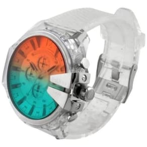 Características Composição do Vidro: Cristal Mineral flame fusion resistente a riscos. Composição da caixa: Transparente Medidas Largura da Caixa: 50 mm Espessura da Caixa: 14 mm Resistência à Água Pressão: 100 ATM Resistência a Respingos: Sim Resistência à Água Corrente: Sim Resistência a Mergulho em Piscina: Sim Funções do Relógio Dia do Mês Cronômetro ENVIAMOS em até 24H úteis Marca: Expressjss