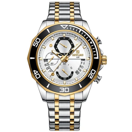 Criado com materiais de alta qualidade, como o vidro resistente no visor e a durável liga do estojo, este relógio de quartzo é tanto uma peça de moda quanto uma ferramenta robusta e confiável. A pulseira de aço inoxidável complementar oferece uma sensação de conforto ao redor do pulso e um fecho seguro, garantindo que o relógio fique em perfeito estado em qualquer atividade. Este relógio não é apenas um acessório, mas também um fiel companheiro que acompanha sua rotina sem problemas.