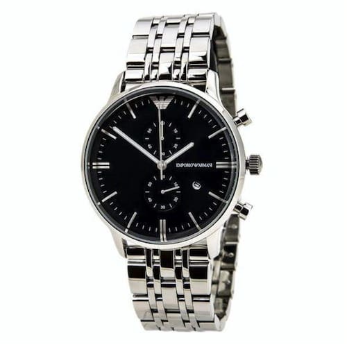 Relógio Masculino Empório Armani Ar1648 Prata Fundo PretoModelo: Ar1648 Prata e AzulDiâmetro da Caixa: 43mmProfundidade da Caixa: 12mmLargura da pulseira: 22mmCor do Mostrador: Prata e Azul (Aço inoxidável)Cor da Pulseira: Prata (Aço Inoxidável)Movimento: QuartzFunções: Calendário, cronômetros de segundos e minutos e dual time Marca: Emporio.armani