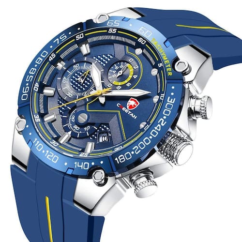 Características: Marca: Cheetah Modelo: 1606 Categoria: Analógico Estilo: Esportivo Movimento: Quartzo Cronógrafo: Ponteiros funcionais Calendário: Sim Diâmetro da caixa visor : 45 mm Espessura da caixa visor : 14 mm Tamanho da pulseira: 225 mm Largura da pulseira: 17.5 mm Tipo de fecho: Fivela Simples Material do Visor: Vidro Mineral Material da caixa: Liga Material da pulseira: Silicone Peso liquido: Cerca de 106g Alimentação: Bateria Resistente à Água: 5ATM Garantia: 03 Meses Conteúdo da Embalagem: - Relógio - Manual de instruções em inglês - Certificado internacional de originalidade
