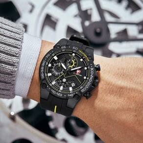 Características: Marca: Cheetah Modelo: 1606 Categoria: Analógico Estilo: Esportivo Movimento: Quartzo Cronógrafo: Ponteiros funcionais Calendário: Sim Diâmetro da caixa visor : 45 mm Espessura da caixa visor : 14 mm Tamanho da pulseira: 225 mm Largura da pulseira: 17.5 mm Tipo de fecho: Fivela Simples Material do Visor: Vidro Mineral Material da caixa: Liga Material da pulseira: Silicone Peso liquido: Cerca de 106g Alimentação: Bateria Resistente à Água: 5ATM : 03 Meses Conteúdo da Embalagem: - Relógio - Manual de instruções em inglês - Certificado internacional de originalidade Marca: Não Informado Ean: 6012507599561