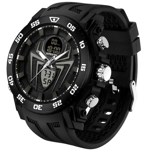 Característica: Cronômetro,luz de fundo,À prova de choque,Tela de LED,Luminous,Data automática,Fuso horário múltiplo