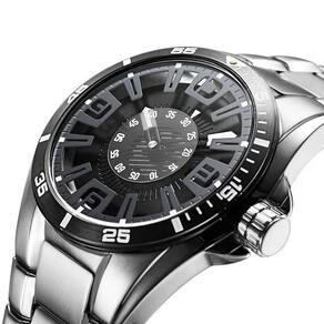 [Tipo de] movimento de quartzo, garantindo precisão confiável, este relógio esportivo mantém você pontual. O material das caixas e estojos é papel, mas a construção principal do relógio de pulso masculino é em aço inoxidável, assegurando durabilidade e um acabamento premium.