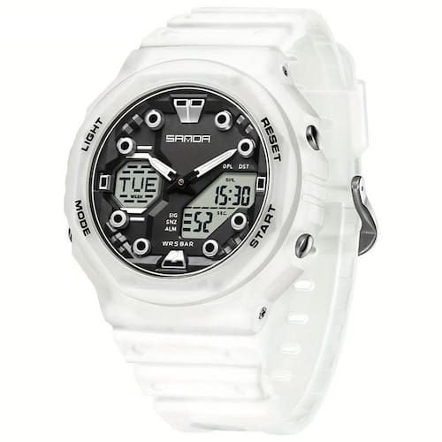 Relógio Masculino Esportivo Multifuncional Com Mostrador Grande Sanda Branco Transparente