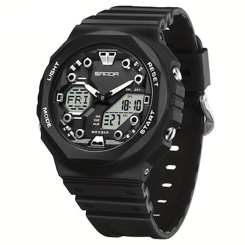 Recursos e Benefícios: [Material Premium] A borracha ergonômica da correia e a resina sintética do estojo garantem durabilidade e conforto, mesmo nas atividades mais intensas, sem abrir mão do estilo. [Design Imponente] Mostrador grande e poligonal que se destaca, dando uma pegada única e moderna que combina com sua vibe ousada e esportiva. [Resistência à Água] Com nível IPX8, este relógio suporta submersões em água, chuva pesada e suor, perfeito para o dia a dia e atividades outdoors. [Alta Precisão] Equipado com mecanismo digital de alta precisão, para que você nunca perca a hora, seja no treino, trabalho ou lazer. [Versatilidade Total] Display duplo de fácil leitura e múltiplas funcionalidades, amigável para uso em qualquer situação que exija rapidez e clareza. Tabela de Especificações: Característica Detalhe Marca SANDA Material da correia Borracha Material do estojo Resina sintética Forma do mostrador Polígono Nível de resistência IPX8 Estilo Desporto Movimento Relogio digital Método de Conexão Nenhum Modo de condução Eletrônico Tipo de exibição Duplo Explícito Instruções de Uso Outro Pureza do Material Não Metal Precioso ID do item CV141368 Por que comprar isto?