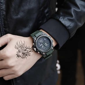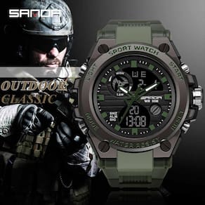 Relógio masculino esportivo sanda modelo 739 estilo militar 1545 Cor: verde Produto diretamente do distribuidor autorizado pela marca sanda, com excelente qualidade de fabricação com durabilidade incomparável devido aos ótimos materiais aplicados na fabricação. Tamanho único e ajustável Produto de luxo e com muito estilo. Não acompanha estojo. Especificações Tipo de item: relógios de pulso de quartzo Estilo: esporte Característica: calendário completo, resistente a choques, cronômetro, data automática, à prova d'água, mergulhador, cronógrafo, luz negra, múltiplos fusos horários, natação, alarme Movimento: duplo, quartzo Material da faixa: borracha - silicone Material do invólucro: liga k34 Não acompanha caixa de presente nem estojo Profundidade de resistência a água: 3bar Fecho: fivelas Comprimento da pulseira: 24cm Largura de banda: 23mm Espessura da caixa:17mm Janela dial tipo de material: resina Modelo número: 739 Diâmetro dial:55mm À prova d' água - até 30m - importante: não tomar banho quente com o relógio nem apertar nenhum botal quando submerso. Smart new tech Sanda739 Marca: Não Informado
