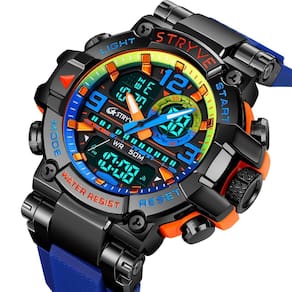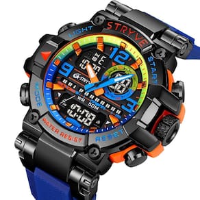 Características: Marca: Stryve Modelo: S8025 Categoria: AnaDigi Analógico: Sim Ponteiros Fluorescentes: Sim Digital: Sim 2 Horários Formato da hora: 12/24 Despertador: Sim Bip de Hora: Sim Calendário: Sim Mostra o Dia da Semana: Sim Mostra o Dia do Mês: Sim Cronômetro: Sim Cronômetro Regressivo timer : Não Luz: Sim Cor da Iluminação: Verde Resistente à Água: 5BAR/5ATM/50M não pressionar os botões quando estiver submerso - Respingos: Sim - Chuva: Sim - Lavar Louça: Sim - Natação: Sim - Mergulho: Não Característica do Vidro: Acrílico Tipo de Fecho: Fivela Dupla Material da Caixa: Plástico Material da Pulseira: Borracha Formato da Caixa: Redondo Diâmetro da Caixa: 55 mm Espessura da Caixa: 19 mm Largura da Pulseira: 22 mm Comprimento da pulseira: 270 mm Ajustável Alimentação: Bateria Peso Líquido: 111g : 03 Meses Conteúdo da Embalagem: Relógio Manual de Instruções