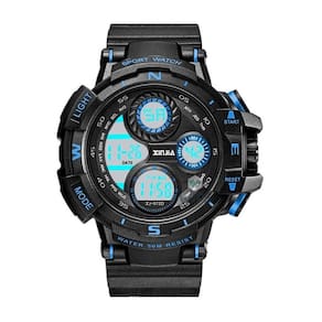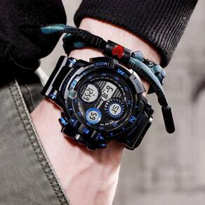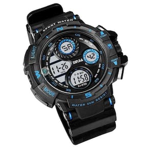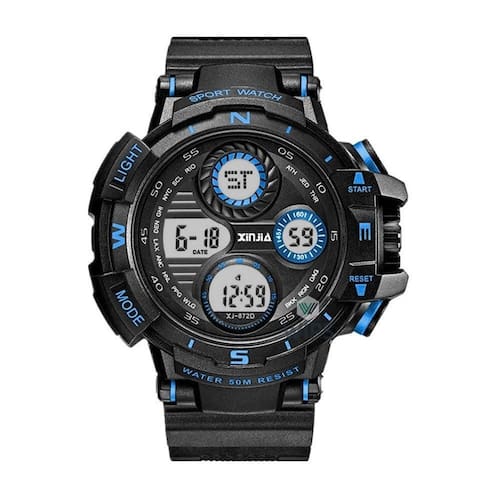 marca: xinjia modelo: xj-872d categoria: digital analógico: não digital: sim 1 horário calendário: sim despertador: sim mostra o dia da semana: sim mostra o dia do mês: sim cronômetro: sim contador regressivo: não luz: sim cor da iluminação: verde resistente à água: 5 atm pode ser utilizado para nadar no raso, por pouco tempo submerso - respingos: sim - chuva: sim - lavar carro: sim - lavar louça: sim - natação: sim - mergulho: não obs: não pressione nenhum botão debaixo dágua. Característica do vidro: acrílico tipo de fecho: fivela cor da caixa: preta material da caixa: plástico diâmetro da caixa: 52mm mm espessura da caixa: 18 mm cor da pulseira: preta material da pulseira: resina forte comprimento máximo da pulseira: 260,00 mm alimentação: bateria interna cor predominante: preto