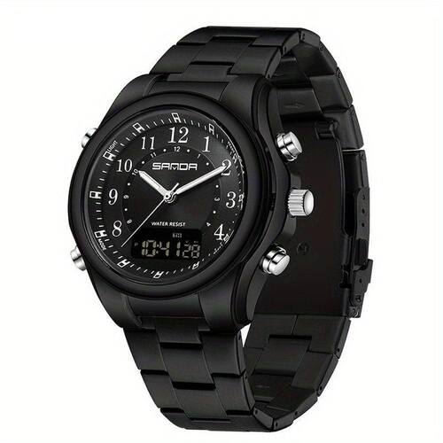 Especificações: [Pulseira que dura] Feita de aço inoxidável, garante resistência e durabilidade enquanto complementa qualquer visual com um toque de sofisticação. [Caixa robusta] A liga de zinco oferece proteção incomparável, mantendo o mecanismo interno seguro e funcional por anos. [Estilo digital duplo] Combinando exibição digital e analógica, adapta-se perfeitamente às suas necessidades de estilo e praticidade diária. [Resistência à água] Perfeito para atividades versáteis, da academia ao trabalho, com resistência à água até 50 metros. [Funcionalidade poderosa] Equipado com alarme e cronômetro, este relógio garante que você terá tudo o que precisa no seu pulso.