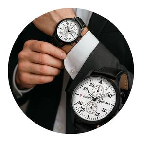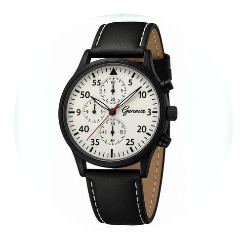 Relógio Masculino Genova Quartzo Couro Preto é a combinação perfeita entre estilo e funcionalidade. Com design moderno, possui mostrador branco detalhado com marcadores em preto e vermelho, além de submostradores decorativos que conferem sofisticação extra ao visual. A pulseira em couro sintético preto com costura reforçada garante conforto e durabilidade, enquanto o fecho clássico assegura ajuste prático e seguro. Ideal para uso no dia a dia ou em ocasiões formais, este relógio é versátil e acrescenta elegância a qualquer look masculino.