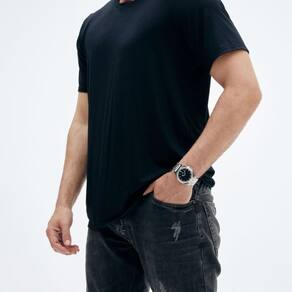 Hudson Black Silver é a combinação perfeita de elegância e praticidade. Sua caixa redonda de aço inoxidável prateada, acompanhada de um mostrador preto clean, reflete o equilíbrio entre estilo moderno e clássico.