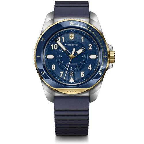 Relógio masculino journey - 242013 Seja no transporte diário ou a caminho das montanhas, este relógio digno de aventureiros ajuda você a responder com naturalidade ao ambiente ao seu redor. O journey 1884 com movimento a quartzo faz alusão à sua herança industrial com detalhes inspirados no do exército suíço e a gravação do ano 1884. A resistência ao choque integrada oferece durabilidade e a proteção antimagnética protege o movimento da poluição eletromagnética, garantindo a precisão aonde quer que você vá. Características principais: fácil de usar graças á resistência à água e choques, com certificação iso a proteção antimagnética protege o movimento contra a poluição eletromagnética, para garantir a precisão pulseira de borracha que pode ser trocada sem o uso de ferramentas, para rápida personalização Dimensões: Altura da caixa: 12mm Diâmetro: 43mm Peso líquido: 120g Largura do encaixe da pulseira: 21mm Detalhes: Movimento: quartzo analógico Material da caixa: aço inoxidável Cor do mostrador: azul / dourado Material de pulseira: borracha Cor da pulseira: azul Recursos do relógio: agulha luminescente: sim contagem regressiva: não cronógrafo: não fecho: fivela regular medidor de atividade: sim resistente à água até: 20 atm/200 m/660 ft segundo fuso horário: não vedação da tampa da caixa: tampa da caixa rosqueada Marca: Não Informado Ean: 7611160247360
