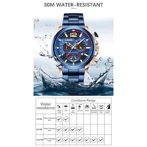 -3atm/30m impermeável (suporta chuveiro de água fria e natação, não opera o relógio debaixo dunderwater água, não suporta água quente);