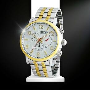 Relógio Masculino Magnum Cronógrafo MA35226S - Prata Relógio Masculino Magnum Cronógrafo Possui incrível design, deixando seu look mais despojado e elegante ao mesmo tempo. Além disso, foram confeccionados com material de primeiríssima qualidade, tornando-o resistente e durável. Características:ean: 7891511426624Marca: Magnum Modelo: MA35226SCor da caixa: PrataMaterial da caixa: AçoCor da Pulseira: Prata e douradoMaterial da pulseira: AçoVidro: Cristal MineralCor do bisel: DouradoFunções: Analógico, Cronógrafo, CalendárioResistência à água: 10 ATMDimensões da Embalagem:Altura: 10cmLargura: 14cmProfundidade: 16cmPeso: 0,500KgGarantia: 12 Meses Ean: 7891511426624
