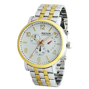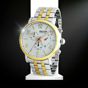 Relógio Masculino Magnum Cronógrafo MA35226S - Prata Relógio Masculino Magnum Cronógrafo Possui incrível design, deixando seu look mais despojado e elegante ao mesmo tempo. Além disso, foram confeccionados com material de primeiríssima qualidade, tornando-o resistente e durável. Características:ean: 7891511426624Marca: Magnum Modelo: MA35226SCor da caixa: PrataMaterial da caixa: AçoCor da Pulseira: Prata e douradoMaterial da pulseira: AçoVidro: Cristal MineralCor do bisel: DouradoFunções: Analógico, Cronógrafo, CalendárioResistência à água: 10 ATMDimensões da Embalagem:Altura: 10cmLargura: 14cmProfundidade: 16cmPeso: 0,500KgGarantia: 12 Meses Marca: Não Informado Ean: 7891511426624