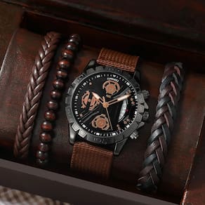 Descubra a elegância e a praticidade do nosso Kit de Relógios e acessórios! Combinando funcionalidade e estilo, o relógio garante pontualidade com um design moderno, enquanto os acessórios complementam com elegância e sofisticação. Ideal para elevar qualquer look, é a escolha perfeita para presentear ou se presentear.