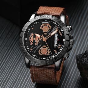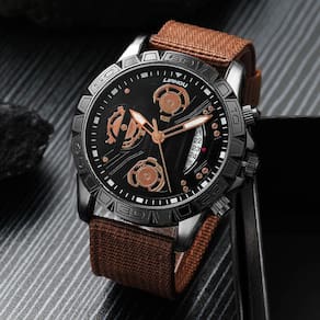 Material: Couro Cor: Marrom Comprimento do relógio: Aproximadamente 24 cm Não acompanha caixa Resistente à água Não é a prova d'água • Não utilizar produtos químicos para limpeza, tais como ceras, abrasivos, desengraxastes, pois, esses produtos poderão alterar o tratamento do relógio. Utilizar somente um pano macio e seco. • Evite expor seu relógio a variações bruscas e excessivas de temperatura. • Não deixe o relógio cair nem bater contra superfícies duras. • A resistência deve ser verificada novamente após qualquer impacto forte.