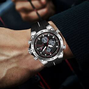 Este relógio masculino moderno utiliza movimento de quartzo de precisão e apresenta um display analógico-digital, garantindo fácil leitura em qualquer ambiente. Sua resistência à água de 5bar oferece tranquilidade para atividades aquáticas moderadas, enquanto a luminosidade dos ponteiros garante visibilidade noturna. Com uma pulseira de silicone confortável e durável, sua experiência de uso será sempre agradável, independentemente da situação. Verdadeiramente redefine o que significa ter um relógio multifuncional que não compromete o estilo.