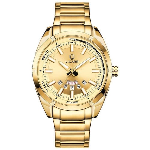 Relógio Masculino Movimento Analógico Quartzo Em Aço Inoxidável à Prova D`água Dourado