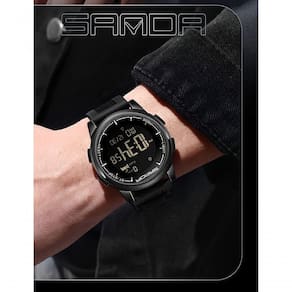 [Mostrador e Estilo] - O mostrador redondo e digital, junto ao movimento eletrônico, proporciona uma leitura clara e precisa das horas, mantendo um estilo elegante e moderno que define a nossa geração.