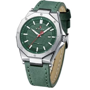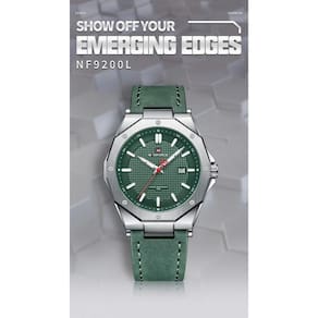 Relógio masculino naviforce pulseira couro nf9200 verde Relógio masculino naviforce pulseira couro verde nf9200 Relógio de pulso masculino em aço inox de quartzo a prova dagua acabamento de luxo qualidade inigualável Impermeável 30 metros: pode suportar o respingo de água e chuva, adequado para uso diário. Tipo material de janela do mostrador: a janela do mostrador é feita de vidro mineral, que é um cristal mineral resistente a riscos e durável.