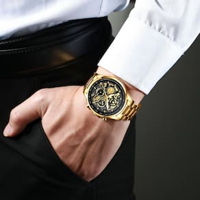 Características: Marca: Nibosi Modelo: 2385 Categoria: Analógico Estilo: Fashion e Casual Movimento: Quartzo Cronógrafo: Ponteiros funcionais Diâmetro da caixa visor : 42 mm Espessura da caixa visor : 11 mm Tamanho da pulseira: 222 mm Largura da pulseira: 20 mm Tipo de fecho: Borboleta Material do Visor: Cristal hardlex Material da caixa: Aço Inoxidável Material da pulseira: Aço Inoxidável Peso liquido: Cerca de 124 g Alimentação: Bateria Resistente à Água: 3BAR/3ATM/30M - Respingos: Sim - Chuva: Sim - Lavar Louça: Sim - Natação: Não - Mergulho: Não Garantia: 03 Meses Conteúdo da Embalagem: - Relógio - Manual de instruções em inglês - Chave para regular a pulseira do relógio - Certificado internacional de originalidade - Flanela para limpar o relógio