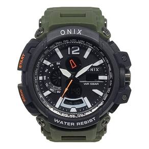Relógio Masculino Onix AnaDigi OX124 Verde e Preto Relógio Masculino Onix AnaDigi OX124 Verde e Preto Marca: Onix Categoria: Calendário: Sim Despertador: Sim Mostra o Dia da Semana: Sim Mostra o Dia do Mês: Sim Cronômetro: Não Contador Regressivo: Não Luz: Sim Cor da Iluminação: Verde Resistente à Água: 5 ATM Pode ser para nadar no raso, por pouco tempo submerso - Respingos: Sim - Chuva: Sim - Lavar Carro: Sim - Lavar Louça: Sim - Natação: Sim - Mergulho: Não Característica do Vidro: Acrílico Tipo de Fecho: Fivela Cor da Caixa: Preto Material da Caixa: Plástico Formato da Caixa: Redondo Diâmetro da Caixa: NaN mm Espessura da Caixa: NaN mm Cor da Pulseira: Verde Material da Pulseira: Plástico Largura da Pulseira: 54,00 mm Comprimento Máximo da Pulseira: 18,50 mm Alimentação: Bateria Interna Peso Líquido: 0,057 Kg Modelo: OX124 Cor Predominante: Verde Cor Diferencial: Preto : 12 Meses Conteúdo da Embalagem: 01 Relógio 01 Embalagem 01 Termo de Marca: Não Informado