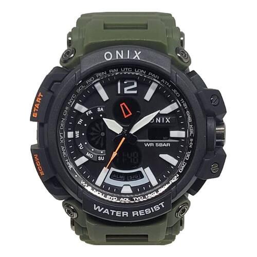 Relógio Masculino Onix AnaDigi OX124 Verde e Preto Relógio Masculino Onix AnaDigi OX124 Verde e Preto Marca: Onix Categoria: Calendário: Sim Despertador: Sim Mostra o Dia da Semana: Sim Mostra o Dia do Mês: Sim Cronômetro: Não Contador Regressivo: Não Luz: Sim Cor da Iluminação: Verde Resistente à Água: 5 ATM Pode ser para nadar no raso, por pouco tempo submerso - Respingos: Sim - Chuva: Sim - Lavar Carro: Sim - Lavar Louça: Sim - Natação: Sim - Mergulho: Não Característica do Vidro: Acrílico Tipo de Fecho: Fivela Cor da Caixa: Preto Material da Caixa: Plástico Formato da Caixa: Redondo Diâmetro da Caixa: NaN mm Espessura da Caixa: NaN mm Cor da Pulseira: Verde Material da Pulseira: Plástico Largura da Pulseira: 54,00 mm Comprimento Máximo da Pulseira: 18,50 mm Alimentação: Bateria Interna Peso Líquido: 0,057 Kg Modelo: OX124 Cor Predominante: Verde Cor Diferencial: Preto : 12 Meses Conteúdo da Embalagem: 01 Relógio 01 Embalagem 01 Termo de Marca: Não Informado Ean: 7891368317014