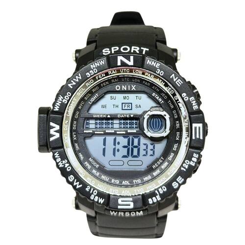 Relógio Masculino Onix Digital IT-889(0101) PretoMarca: Onix Categoria: Digital Analógico: Não Digital: Sim (1 Horário) Calendário: Sim Despertador: Sim Mostra o Dia da Semana: Sim Mostra o Dia do Mês: Sim Cronômetro: Sim Luz: Sim Cor da Iluminação: VerdeResistente à Água: 5 ATM (Pode ser utilizado para nadar no raso, por pouco tempo submerso) - Respingos: Sim - Chuva: Sim - Lavar Carro: Sim - Lavar Louça: Sim - Natação: Sim - Mergulho: Não Característica do Vidro: Acrílico Tipo de Fecho: Fivela Cor da Caixa: Preto Material da Caixa: Borracha Formato da Caixa: Redondo Diâmetro da Caixa: 48,00 (mm) Espessura da Caixa: 17,00 (mm) Cor da Pulseira: Preto Material da Pulseira: Borracha Largura da Pulseira: 19,50 (mm) Comprimento Máximo da Pulseira: 250,00 (mm) Alimentação: Bateria Interna Peso Líquido: 0,055 Kg Modelo: IT-889(0101) Cor Predominante: Preto Garantia: 12 MesesConteúdo da Embalagem: 01 Relógio 01 Embalagem 01 Termo de Garantia