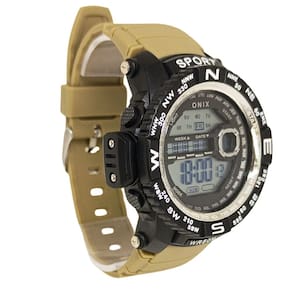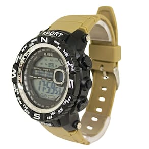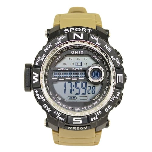 Relógio Masculino Onix Digital IT-889(0106) Preto e BegeMarca: Onix Categoria: Digital Analógico: Não Digital: Sim (1 Horário) Calendário: Sim Mostra o Dia da Semana: Sim Cronômetro: Sim Luz: Sim Cor da Iluminação: VerdeResistente à Água: 5 ATM (Pode ser utilizado para nadar no raso, por pouco tempo submerso) - Respingos: Sim - Chuva: Sim - Lavar Carro: Sim - Lavar Louça: Sim - Natação: Sim - Mergulho: Não Característica do Vidro: Acrílico Tipo de Fecho: Fivela Cor da Caixa: Preto Material da Caixa: Plástico Formato da Caixa: Redondo Diâmetro da Caixa: 48,00 (mm) Espessura da Caixa: 17,00 (mm) Cor da Pulseira: Bege Material da Pulseira: Borracha Largura da Pulseira: 19,50 (mm) Comprimento Máximo da Pulseira: 250,00 (mm) Alimentação: Bateria Interna Peso Líquido: 0,055 Kg Modelo: IT-889(0106) Cor Predominante: Preto Cor Diferencial: Bege Garantia: 12 MesesConteúdo da Embalagem: 01 Relógio 01 Embalagem 01 Termo de Garantia