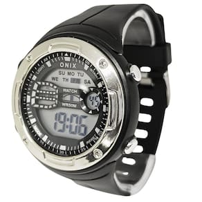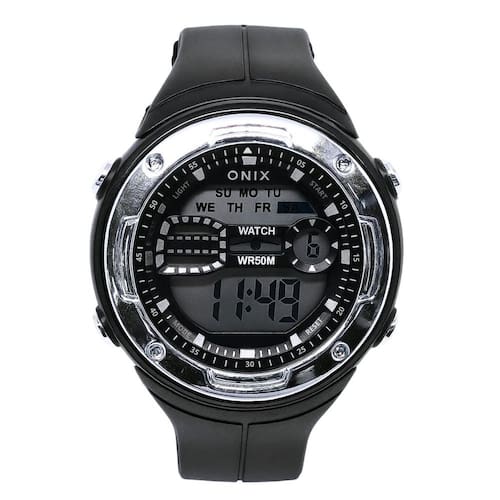 Relógio Masculino Onix Digital IT-898 Preto e PrataMarca: Onix Categoria: Digital Analógico: Não Digital: Sim (1 Horário) Calendário: Sim Despertador: Sim Mostra o Dia da Semana: Sim Cronômetro: Sim Luz: NãoResistente à Água: 5 ATM (Pode ser utilizado para nadar no raso, por pouco tempo submerso) - Respingos: Sim - Chuva: Sim - Lavar Carro: Sim - Lavar Louça: Sim - Natação: Sim - Mergulho: Não Característica do Vidro: Acrílico Tipo de Fecho: Fivela Cor da Caixa: Preto Material da Caixa: Plástico Formato da Caixa: Redondo Diâmetro da Caixa: 50,00 (mm) Espessura da Caixa: 15,00 (mm) Cor da Pulseira: Preto Material da Pulseira: Plástico Largura da Pulseira: 21,50 (mm) Comprimento Máximo da Pulseira: 250,00 (mm) Alimentação: Bateria Interna Peso Líquido: 0,055 Kg Modelo: IT-898 Cor Predominante: Preto Cor Diferencial: Prata Garantia: 12 MesesConteúdo da Embalagem: 01 Relógio 01 Embalagem 01 Termo de Garantia