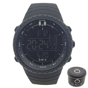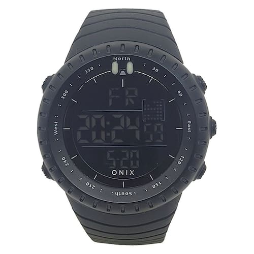 Marca: Onix Categoria: Digital Analógico: Não Digital: Sim (1 Horário) Calendário: Sim Despertador: Sim Mostra o Dia da Semana: Sim Mostra o Dia do Mês: Sim Cronômetro: Sim Contador Regressivo: Não Luz: Sim Cor da Iluminação: Azul Resistente à Água: 5 ATM - Respingos: Sim - Chuva: Sim - Lavar Carro: Sim - Lavar Louça: Sim - Natação: Sim - Mergulho: Não Característica do Vidro: Acrílico Tipo de Fecho: Fivela Cor da Caixa: Preto Material da Caixa: Plástico Formato da Caixa: Redondo Diâmetro da Caixa: 49,50 (mm) Espessura da Caixa: 16,00 (mm) Cor da Pulseira: Preto Material da Pulseira: Borracha Largura da Pulseira: 23,00 (mm) Comprimento Máximo da Pulseira: 250,00 (mm) Alimentação: Bateria Interna Peso Líquido: 0,060 Kg Modelo: OX104 Cor Predominante: Preto Garantia: 12 Meses
