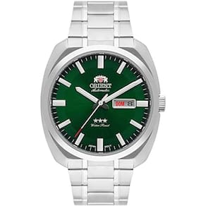 Características Formato do Relógio: Redondo Composição do Vidro: Cristal mineral Material da Caixa: Aço Inox Cor da Caixa: Prata Cor do mostrador: Verde Material da Pulseira: Aço Inox Cor da Pulseira: Prata Mecanismo: Mecânico-Automático