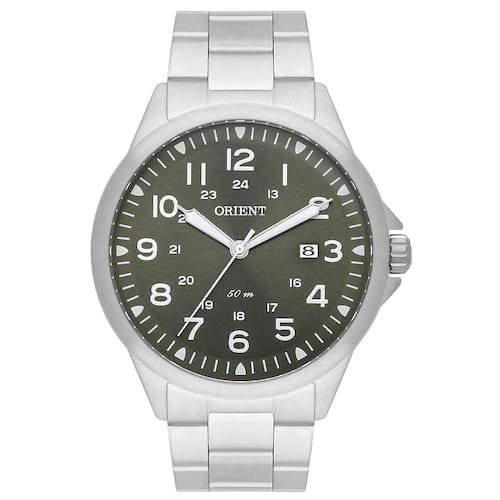 Toda qualidade e tecnoligia da marca Orient presente em mais de 70 países esta~o nesse Relógio Masculino MBSS1380 produzido com caixa e pulseira em aço e fundo rosqueado que dão sofisticaça~o e charme com maior durabilidade, compondo perfeitamente o seu estilo Descricão do Relógio Marca = ORIENT Modelo = MBSS1380 E2SX Genero = Masculino Mostrador = Verde Caixa = Prateada Mecanismo = Quartz / Analógico Calendário = Sim - Dia do Mês Coroa = Simples Fundo = Rosqueado Resistência à água = 5 ATM (Lavar a Mão / Chuva / Piscina) Vidro = Cristal Mineral Material da caixa = Aço Inox Material da pulseira = Aço Inox Diâmetro da caixa = 4,5 cm Diâmetro do visor = 4,0 cm Espessura da caixa = 0,8 cm Largura da pulseira = 2,2 cm Comprimento da Pulseira = 20 cm Fabricante = Orient Relógios da Amazônia LTDA Garantia = Garantia de 1 Ano direto com Fabricante Conteúdo da embalagem: 01 Relógio de pulso 01 Estojo Autêntico Manual em português Cerificado de Garantia do Fabricante Nota Fiscal Eletrônica