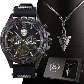 Relogio Masculino Pantera Preto Aço Inox + Cordão Corrente Social Analogico Presente Casual Possui leitura fácil e é perfeito para o dia a dia. Acompanhando o relógio, o colar preto traz um elemento marcante ao conjunto. Uma ótima opção para presentear em diversas ocasiões, expressando estilo com paixão pelo universo do Pantera Negra