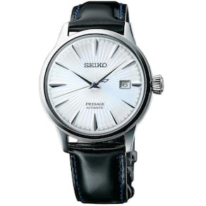 Número de referência SRPB43J1 Marca: Seiko Modelo: Presage Movimento :Automático Material da caixa:Aço Inox Pulseira em Couro Gênero:Unissex Diâmetro da Caixa: 40.5 mm Espessura da Caixa: 10.5 mm Resistência à água até 5 ATM (50 m) Fecho Duplo na pulseira Data do dia Fundo Tampa Transparente Rosqueada