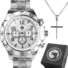 Relógio Masculino Orizom Spaceman Dragon Com visual robusto e imponente, este relógio é fabricado em aço inoxidável na cor prata, com acabamento refinado e tampa traseira blindada com arte exclusiva de dragão gravada a laser. Resistente à água para situações cotidianas, conta com todos os elementos de autenticidade de um produto Orizom, garantindo originalidade e durabilidade.