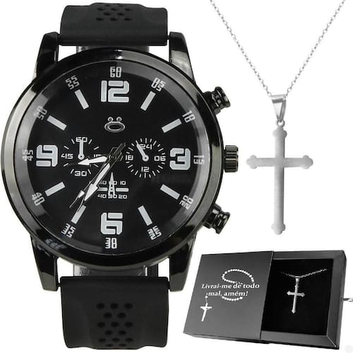 Relogio Masculino Preto Aço + Cordao Crucifixo Ajustavel Black Piano Qualidade Premium Social Prata Kit De Acessórios Masculino Orizom - Linha Jesus Na Cruz Renove o seu visual com este sofisticado kit de acessórios masculinos Orizom! Feito para homens que buscam estilo, qualidade e um toque espiritual em um único conjunto. Surpreenda-se com um relógio premium, cordão, pingente em forma de cruz e uma pulseira com oração, ideais para uso próprio ou para presentear alguém especial.