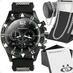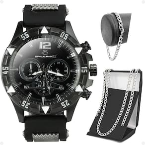Relogio Masculino Preto + Cordão Prata Grumet + Pulseira Kit Especial Orizom Spaceman X para Presentear Quem Você Ama!! Surpreenda aquela pessoa especial em sua vida com este kit exclusivo, composto por: