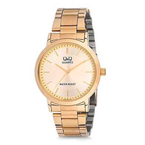 Ficha técnica: Marca: Q&Q Modelo: QA38J010Y Cor: Dourado Material da Pulseira: Aço Formato da Caixa: Redondo Tamanho da Caixa: Grande Diâmetro da caixa: 39 mm Espessura da caixa: 8 mm Vidro: Cristal Mineral Tipo de fecho: Dobrável Gênero: Masculino Resistente à água: Sim Garantia: 12 meses