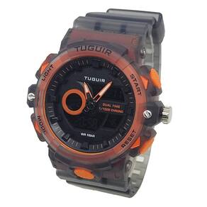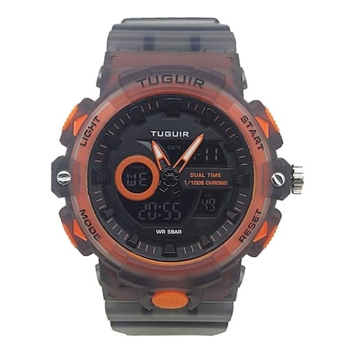 Relógio Masculino Relógio Tuguir AnaDigi TG30415 Cinza e Laranja Relógio Masculino Relógio Tuguir AnaDigi TG30415 Cinza e Laranja Marca: Tuguir Categoria: AnaDigi Analógico: Sim 1 Horário Ponteiros Fluorescentes: Selecione Digital: Sim 1 Horário Despertador: Sim Mostra o Dia da Semana: Sim Mostra o Dia do Mês: Sim Cronômetro: Sim Luz: Sim Cor da Iluminação: Verde Resistente à Água: 5 ATM Pode ser Utilizado para nadar no raso, por pouco tempo submerso - Respingos: Sim - Chuva: Sim - Lavar Carro: Sim - Lavar Louça: Sim - Natação: Sim - Mergulho: Não Característica do Vidro: Acrílico Tipo de Fecho: Fivela Cor da Caixa: Laranja Material da Caixa: Plástico Formato da Caixa: Redondo Diâmetro da Caixa: 48,00 mm Espessura da Caixa: 18,00 mm Cor da Pulseira: Cinza Material da Pulseira: Borracha Largura da Pulseira: 22,00 mm Comprimento Máximo da Pulseira: 255,00 mm Alimentação: Bateria Interna Peso Líquido: 0,060 Kg Modelo: TG30415 Cor Predominante: Cinza Cor Diferencial: Laranja : 12 Meses Conteúdo da Embalagem: 01 Relógio 01 Embalagem 01 Termo de
