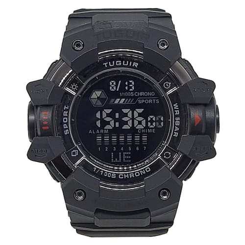 Relógio Masculino Relógio Tuguir Digital TG30401 Preto Relógio Masculino Relógio Tuguir Digital TG30401 Preto Marca: Tuguir Categoria: Digital Analógico: Não Digital: Sim 1 Horário Calendário: Sim Despertador: Sim Mostra o Dia da Semana: Sim Mostra o Dia do Mês: Sim Cronômetro: Sim Luz: Sim Cor da Iluminação: Azul Resistente à Água: 5 ATM Pode ser Utilizado para nadar no raso, por pouco tempo submerso - Respingos: Sim - Chuva: Sim - Lavar Carro: Sim - Lavar Louça: Sim - Natação: Sim - Mergulho: Não Característica do Vidro: Selecione Tipo de Fecho: Fivela Cor da Caixa: Preto Material da Caixa: Plástico Formato da Caixa: Redondo Diâmetro da Caixa: 54,00 mm Espessura da Caixa: 18,00 mm Cor da Pulseira: Preto Material da Pulseira: Borracha Largura da Pulseira: 22,00 mm Comprimento Máximo da Pulseira: 250,00 mm Alimentação: Bateria Interna Peso Líquido: 0,069 Kg Modelo: TG30401 Cor Predominante: Preto : 12 Meses Conteúdo da Embalagem: 01 Relógio 01 Embalagem 01 Termo de Ean: 7891368316352