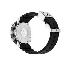 caixa do relógio em aço inoxidável prateado e resina preta com catraca giratória unidirecional