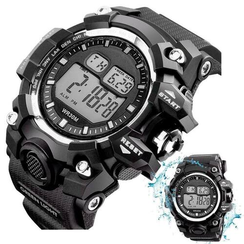 Relogio Masculino Silicone Prova Dagua Preto Digital Alarme Relógio Digital Masculino Orizom Spaceman Preta Detalhe Prata Resistente à Água Adicione um toque de estilo e praticidade ao seu dia com o Relógio Digital Masculino Orizom Spaceman. Com cor preta e detalhe em prata, esse relógio resistente e funcional é ideal para uso diário em diferentes situações. Possui maquinário blindado, pulseira ajustável de silicone e é 100% funcional. Além disso, conta com alarme, calendário e data, sendo perfeito para acompanhar a sua rotina. Não perca a oportunidade de adquirir esse relógio versátil e durável. Aproveite já! (NÃO ACOMPANHA CAIXA)